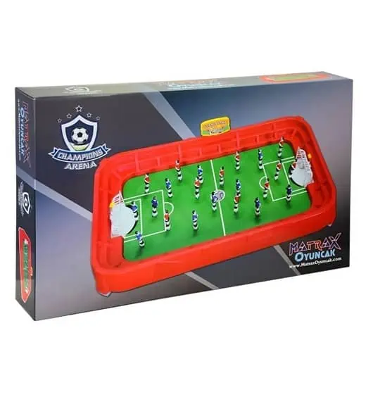 BabyFoot Champion Arena en plastique de la marque Matrax. Age a partir de 3 ans. Dimensions 40 x 60 x 8,5 cm. Le fabriquant Matrax produit également des jouets jeux de rôle garçon. Ce Babyfoot en plastique de qualité parfaite est un excellent cadeau et jouet! Deviens le meilleur buteur du championnat en marquant le plus de points contre ton adversaire ! Ce Babyfoot avec plusieurs joueurs (11 joueurs au total pour chacun) et 3 balles en plastique pour les enfants dès 3 ans. Pratique : les filets des cages sont en plastique, pour pouvoir récupérer plus facilement les balles. Sa taille permet de l’emporter partout et de jouer sur une table à l’intérieur, comme à l’extérieur ! Les enfants et les adultes vont adorer jouer des parties ensemble.