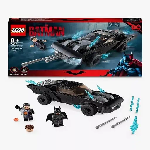 Avec Batmobile à la poursuite de Pingouin Lego les jeunes fans peuvent jouer les super Hero. A partir de 8 ans, et 392pcs. Les enfants fans de Batman seront fascinés par le set de super-héros LEGO DC Batman Batmobile. Egalement, ce jouet de construction Batman est pour les enfants dès 8 ans et représente le film culte The Batman entre leurs mains.