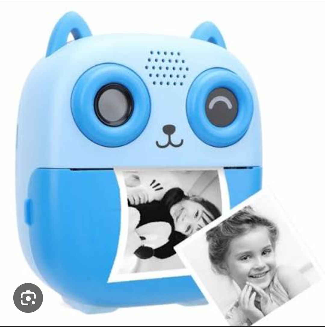 Superbe camera imprimante rose. Contient des jeux et de la musique. Imprime sur papier rouleau (consommable disponible en librairie) en noir et blanc de très haute qualité. Rechargeable.