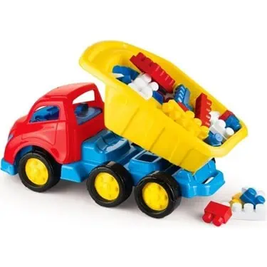 Maxi Camion et grands Lego blocks colorés 50pcs de la marque Dolu. Dimensions 31 X 31 X 69 CM. Un camion de travaux publics muni d’une pelle et d’une benne inclinables et garni de 50 briques de grande taille. En voilà un beau camion pour votre enfant ! La marque Dolu est un fabriquant qui produit plusieurs jeu de rôle garçons. Un Maxi camion comme celui là peut être offert pour n’importe quelle occasion : anniversaire, réussite scolaire… Il est idéal pour jouer à l’extérieur et notamment lors des vacances à la plage, mais aussi à l’intérieur. Ce camion jouet est une reproduction ludique des engins de chantier du même nom.