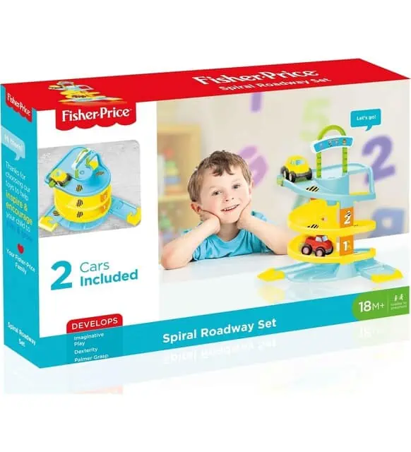 Circuit Fisher Price circulaire de la marque DOLU. Comprend 2 étages et inclus également Inclus 2 voitures en plastique. A partir 18 mois. Dimensions 55,5×13,4×10,5 cm. Parmi les innombrables possibilités de jouets pour enfants, le choix du bon cadeau est essentiel! On vous suggère le circuit pour voitures Fisher Price circulaire de DOLU in cadeau magnifique! Les petites voitures ont toujours été et sont encore au cœur du jeu chez l’enfant. Si le circuit est essentiel à la conception même du jeu, il l’est aussi dans la construction de l’enfant. Car jouer aux voitures sur un circuit agit sur bon nombres de compétences.
