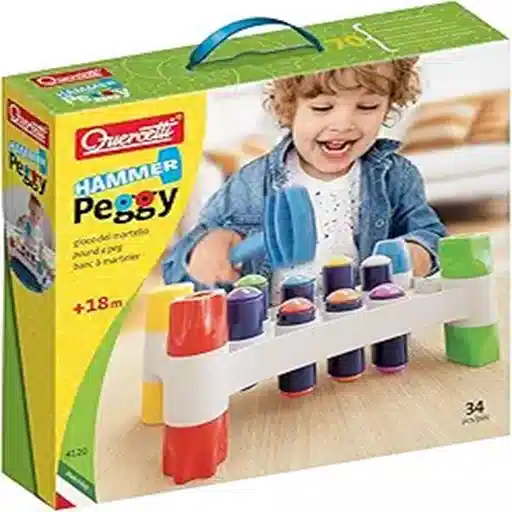 Jeu a marteler de la marque Italienne Quercetti, Jeu éducatif et d’éveil par excellence. Dimensions 16 x 33 x 21 cm. Age de 18mois et plus. Jeu de construction et jeu éducatif. La marque Quercetti est une référence en matière de jeux et jouets éducatifs.. Les jouets et les jeux éducatifs Quercetti sont une référence dans la matière! Les résultats sont garantis.