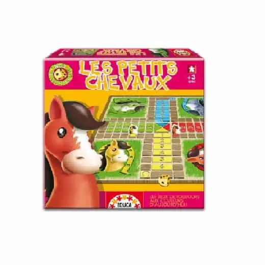 Jeu les Petits Chevaux, marque Educa. Avec un design frais, dynamique et engageant, découvrez ou redécouvrez LES PETITS CHEVAUX. Les petits chevaux est un jeu de parcours où l’on déplace les pions en fonction du résultat du dé. Jeu de société parfait. Age a partir de 4ans et plus.