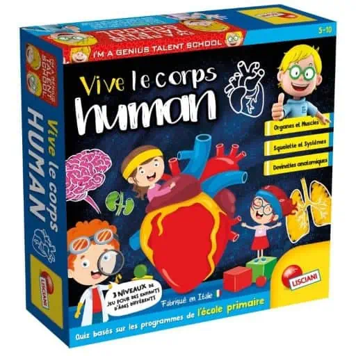 Le corps humain est un jeu de la marque Lisciani. Basé sur les programmes de l’école primaire pour découvrir Les organes les tissus etc. Vivre le corps humain est un jeu de quiz amusant et éducatif basé sur les programmes de sciences de l’école primaire. Les joueurs avancent sur le plateau en répondant à de simples questions et aux « mini-jeux » d’anatomie. Grâce aux trois niveaux de difficultés, des enfants d’âges différents peuvent jouer ensemble. Découvrez de quoi notre est fait notre corps et comment il fonctionne grâce à ce jeu Le corps humain de la marque Lisciani, étonnant et amusant!
