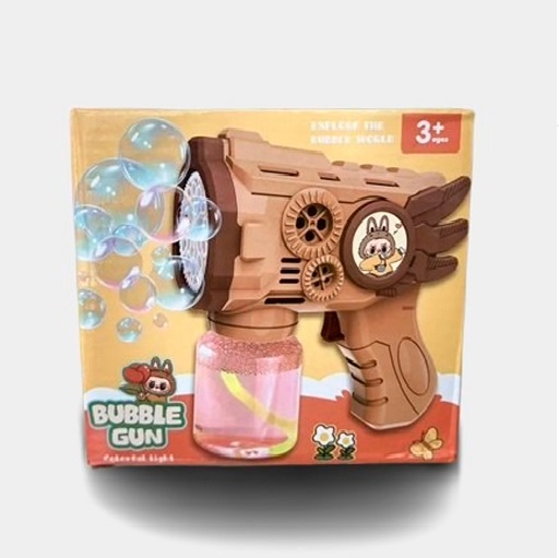 Magnifique petit pistolet à bulles Labubu. Fourni avec sa bouteille à bulles pour remplir le pistolet. Fonctionne avec des piles.