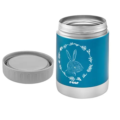 Récipient isotherme 300ml couleur Bleu de la marque Allemande REER. Conserve les aliments et liquides au chaud pendant 6h. La conception du récipient alimentaire Reer peut transporter en sécurité votre préparation alimentaire pour votre bébé sans fuite et ceci pendant six heures. Parce que le récipient est exempt de substances nocives (BPA, PVC et Phtalates) il est idéal pour Garder sainement les aliments pour bébés. Ce conteneur isotherme de REER reste un fidèle compagnon de voyage. Le couvercle assure une parfaite étanchéité grâce au silicone qui empêche peut tout fluide de s’échapper.