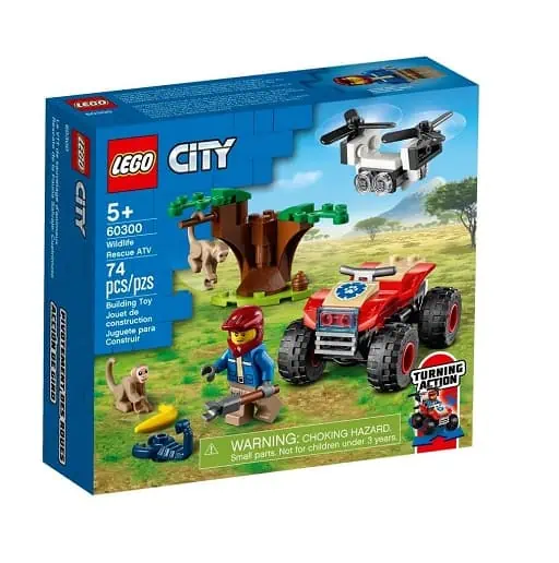 Initiez les explorateurs en herbe aux merveilles de la nature avec le set Lego City et Le quad de sauvetage des animaux sauvages. Ce jeu inclut un quad tout-terrain qui tourne quand on l’incline, une pince, un drone, ainsi qu’un petit décor de savane. Ajoutez l’explorateur, les singes et le scorpion pour des aventures passionnantes de sauvetage d’animaux.