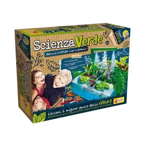 Sciences vertes de Lisciani est un coffret complet pour comprendre la Biologie végétale. Age de 7ans à 12ans et même plus. La marque Lisciani est la référence en matière de jeux et jouets éducatifs. Avec ce kit scientifique on ne s’ennuie jamais ! Embrassez la nature, découvrez la botanique! Excellente serre avec cuve hydroponique, éclairage LED avec bras coulissant, graines biologiques, tourbe, outils de culture, pots, riche manuel illustré. Expérimentation scientifique, observation, premiers rudiments de botanique, protection de l’environnement, engagement social. Ce jouet est Fabriqué en Italie