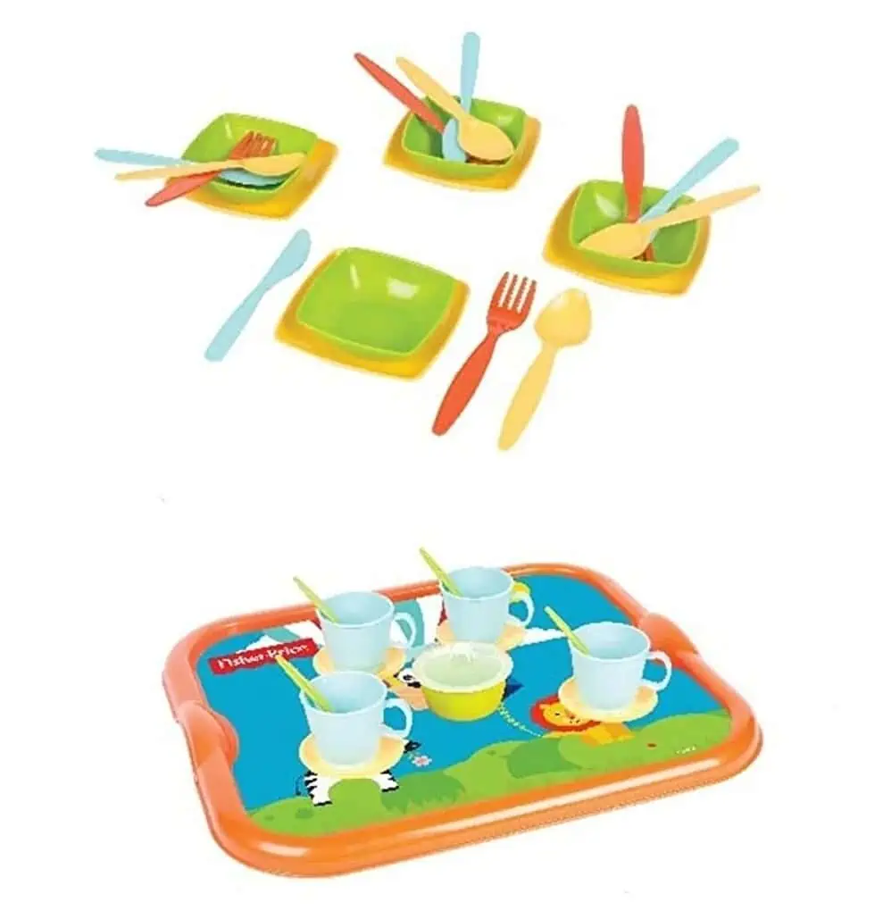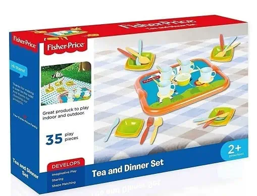 Set de Thé Fisher Price contient 35pcs de la marque DOLU. A partir de 3ans. Ce service à thé est parfait pour accompagner les dinettes ou les cuisines pour enfants. Il permet de jouer en développant l’imagination des plus petits ! Il est fabriqué en plastique de haute qualité et répondant à toutes les normes de sécurité internationales. En outre, La marque Dolu est un fabriquant qui produit plusieurs jeu de rôle filles. Vous prendrez bien une tasse de thé ou une tisane accompagnée d’un biscuit nappé ? Ce set de service à thé met l’eau à la bouche !